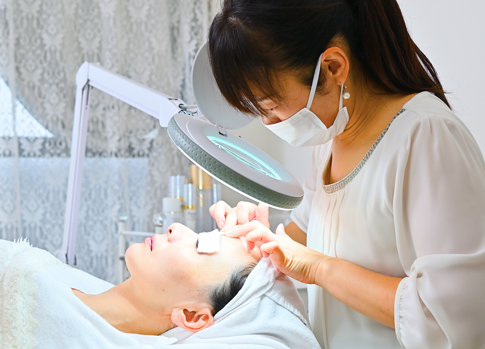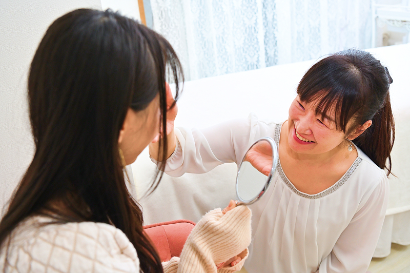 施術後のお肌の状態を確認し、ご自宅でのケア方法や
